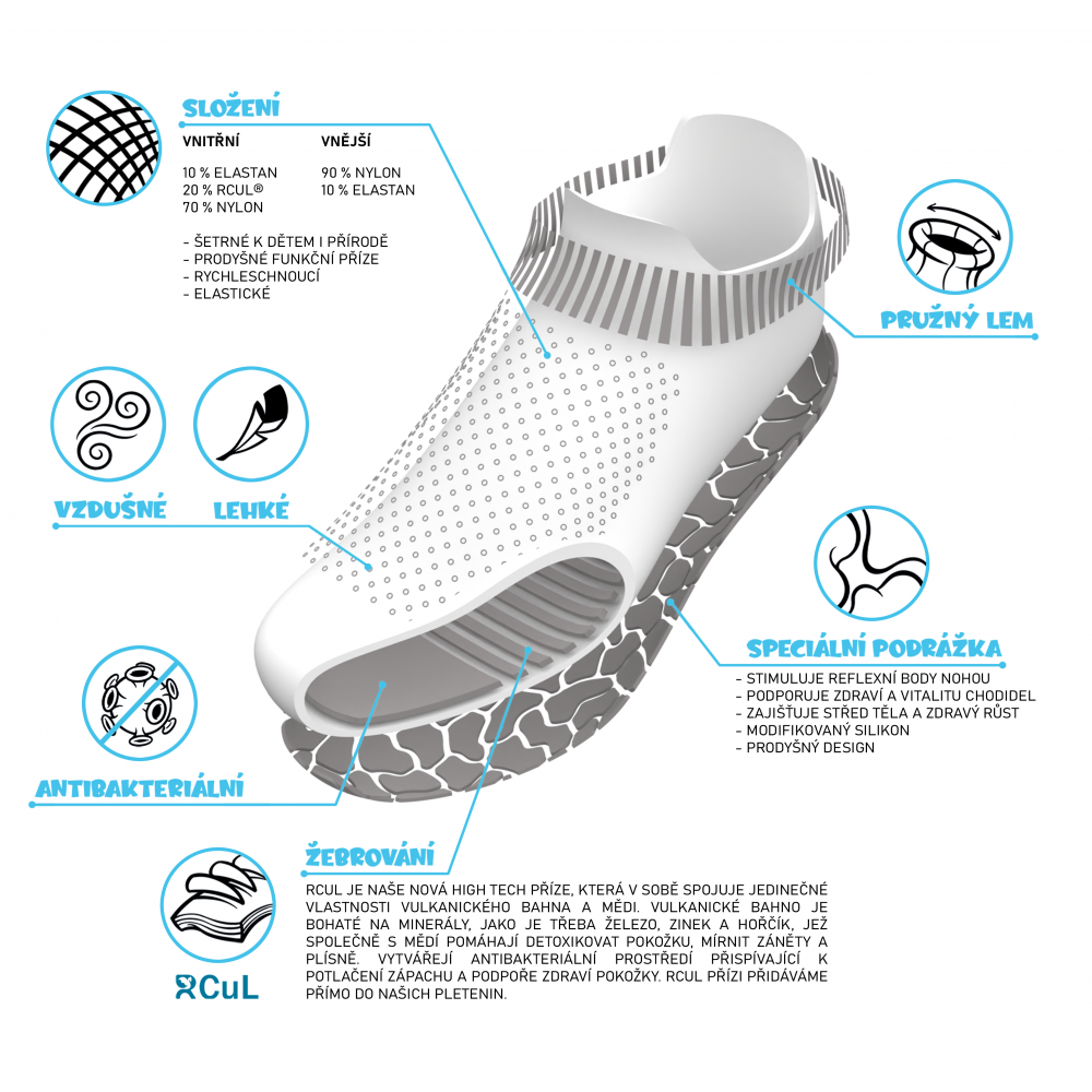 Elastický lem perfektně drží ponožkobotu na noze, takže se nemusíte bát sklouznutí.
